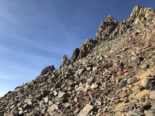 With this is mind, I evaluated our immediate situation. Was this careless? Most mistakes, injuries and death happen during the descent. I looked down at the major open air below us. "Considerable commitment" might be an understatement, 14ers.com. We continued up.